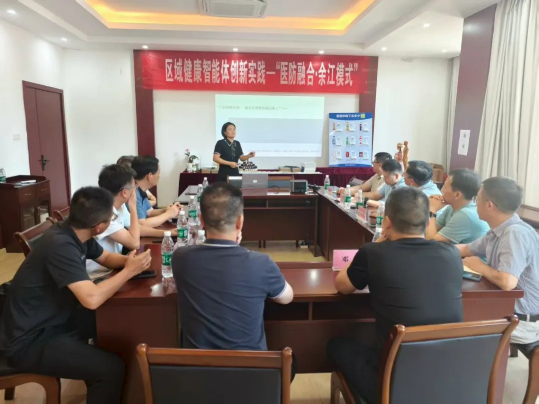 座谈会上,总经理周美辰详细阐述了“医防融合●余江模式”的核心内涵与创新实践。她指出,“余江模式”的核心竞争力主要体现在三方面:一是构建可防可控可逆转的医防融合体系,通过精准驱动个性化方案的制定,实现健康管理的个性化和主动化;二是形成可复制的产业链带动体系,有效推动本地生活、带动产业链条协同发展;三是打造健康又省钱的价值体系,依托集采+供应链本地化,塑造本地品牌“余知余味”。“余江模式”依托超级健康自然大队列——“健康智能体”赋能医防和医产创新,实现多体系融合,推动健康数字化落地,促使健康管理从“经验决策”转向“精准实施”。