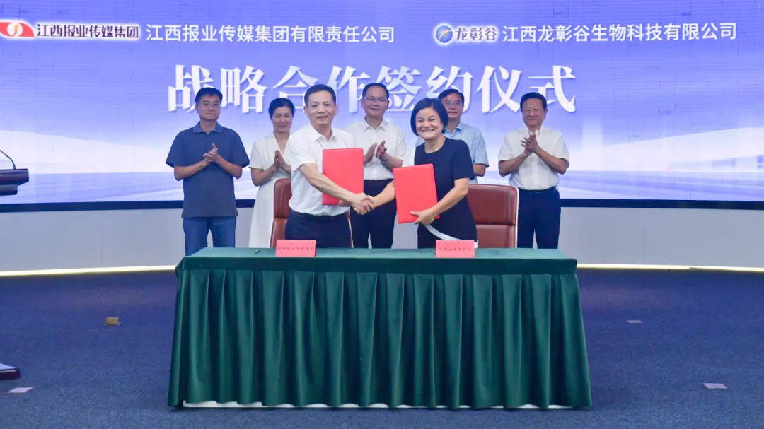 8月11日下午,江西龙彰谷生物科技有限公司与江西报业传媒集团正式签署战略合作协议。这标志着双方将在健康传播、产业赋能、品牌建设、模式推广等领域展开深度协同,共同探索“媒体+大健康”的创新融合路径。此次合作是双方深刻把握国家战略导向、积极响应省委省政府号召,主动融入健康江西建设大局的关键一步。