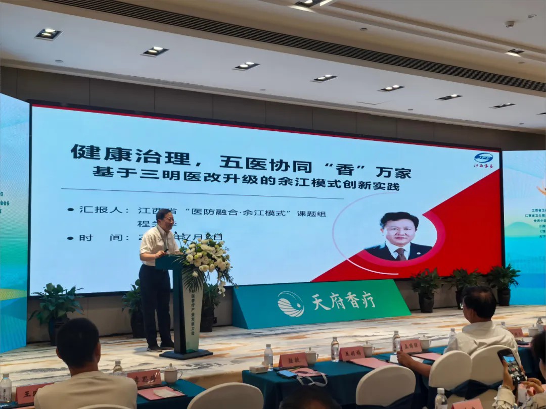 7月19日,在成都举行的2025中医香疗产业发展大会上,江西省卫健委原党组成员、副主任,“医防融合·余江模式”课题组组长程关华,作题为《健康治理余江模式创新实践》的主旨演讲,向与会者系统介绍了基于“三明医改”升级的“余江模式”,引发业界高度关注。彭州市委副书记、市长蒋明,江西中医药大学校长朱卫丰,云南中医药大学党委副书记熊磊,江西中医药大学原副校长杨明,河南中医药大学原副校长苗明三等出席会议。